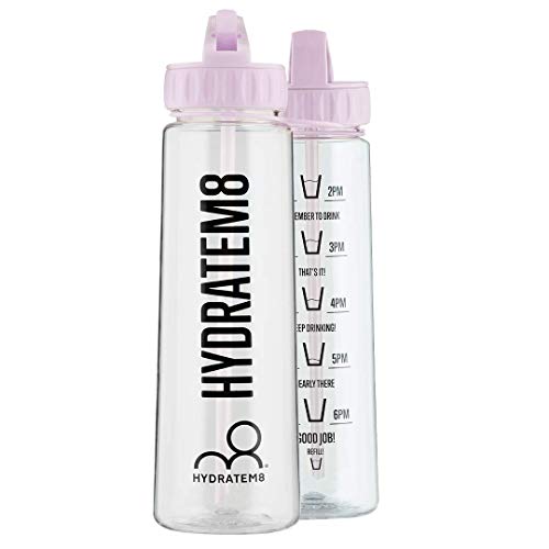 HYDRATEM8 Lilac 900ml Hydration Tracker Water Bottle BPA ~ Hydration Tracker Water Bottles are the perfect sidekick to your busy day Helping you keep afloat of how much water you are consuming this drinking water bottle ensures you get the recommended daily intake with time markers to help you get a steady stream of hydration throughout the day