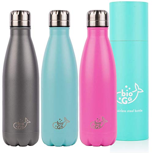 bioGo Bottle Grey 500ml Premium Stainless Steel ~ Stainless Steel Water Bottle Premium Insulated Double Walled Reusable Metal Bottles Keeps Drinks Cold for 24Hrs Hot for 12Hrs 260ml 500ml BPA Free Leakproof Guarantee 48 out of 5 stars 281