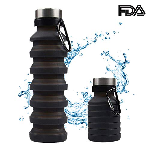 Silicone Foldable Water Bottle Portable Outdoor Travel ~ Shop Silicone Foldable Water Bottle Portable Outdoor Travel Sports Folding Kettle Cup Expandable Flexible Collapsible Reusable Kettle Water Container Camping Gym Hiking Summit Mug with Carabiner 550 ml Free delivery and returns on all eligible orders