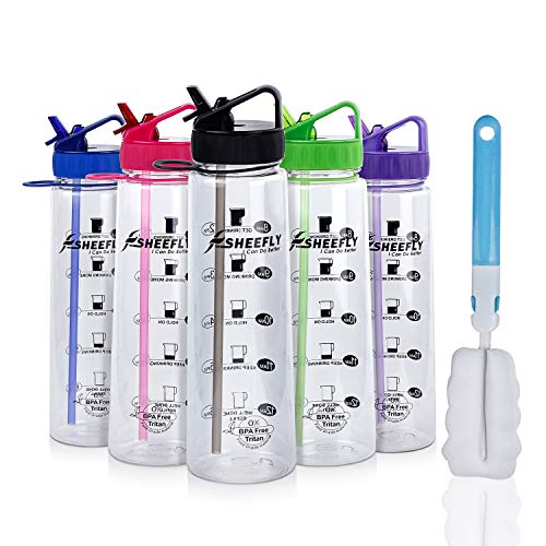 SHEEFLY Motivational Sports Water Bottle With Straw 900ml ~ Shop SHEEFLY Motivational Sports Water Bottle With Straw 900ml BPA Free Tritan Plastic with Time Marker Flip Nozzle NonLeak NontoxicFor Adults Kids Outdoors Camping Hiking Cycling2 Straws Free delivery and returns on all eligible orders